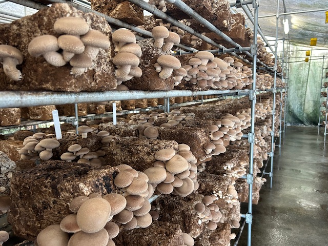 大きくてぷりっぷりの肉厚しいたけです。晩ごはんのおかずにどうぞ♪しいたけ狩りも開催中です。